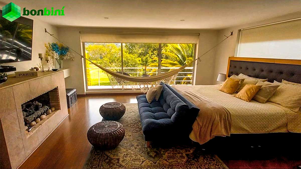 - Diseño y distribución: Con tres niveles, esta casa ofrece un diseño espacioso y bien distribuido que incluye cuatro habitaciones, cada una con vestier y baño. La habitación principal, además, cuenta con jacuzzi y chimenea, creando un oasis de relajación y confort.